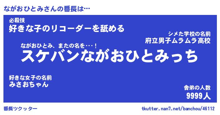 | ヒーロー風カッコイイあだ名 | 『スーパーナガオヒトミ』『暗黒騎士ナガ』 |