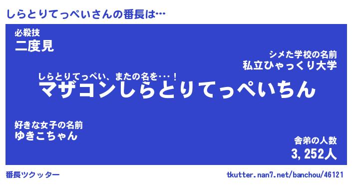 | ヒーロー風カッコイイあだ名 | 『スーパーシラトリテッペイ』 |