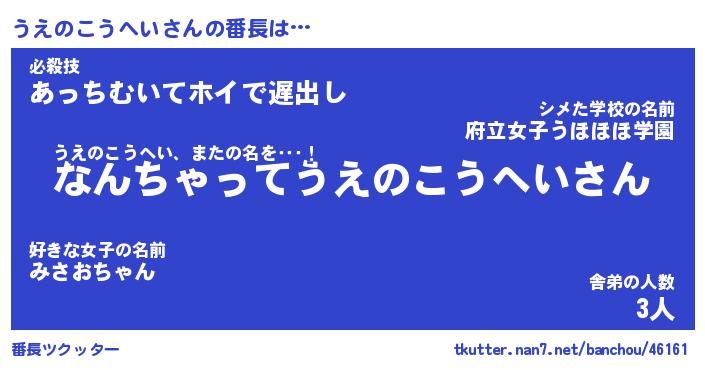 | 伝説のあだ名 | 『伝説のスナイパーうえのこうへい』 |