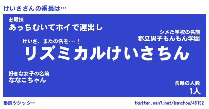 | 意味不明あだ名 | 『ペロリンけいさ』『けいさフォーエバー』 |