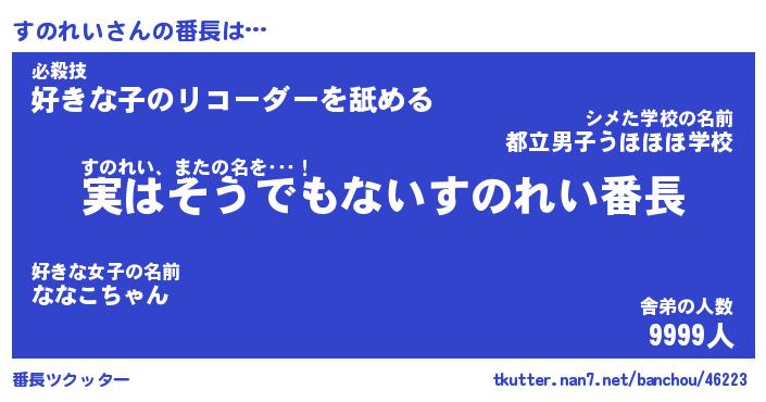 | 意味不明あだ名 | 『ペロリンすのれい』『永久保存すのれい』 |