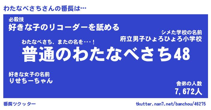 | ポケモン風あだ名 | 『ワタチュウ』『ワタナダネ』 |