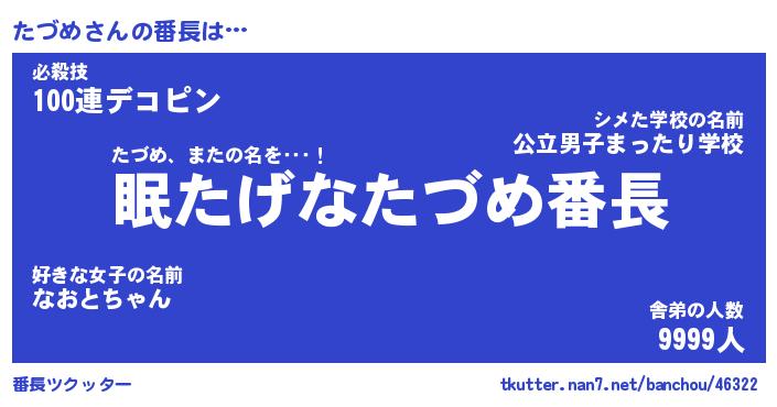 | ピコ太郎風あだ名 | 『タコ史郎』『ピタ次郎』『タヅ六郎』 |