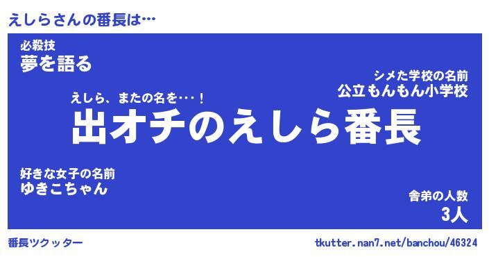 | 伝説のあだ名 | 『伝説のスナイパーえしら』 |