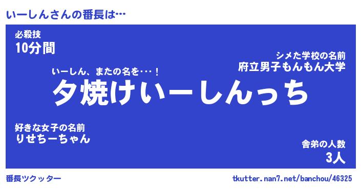 | 意味不明あだ名 | 『ペロリンいーしん』『永久保存いーしん』 |