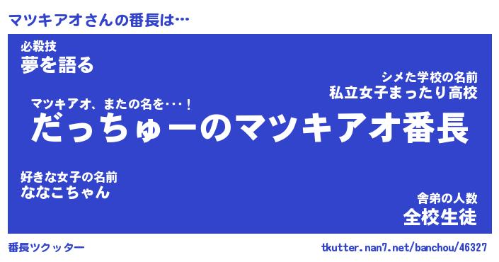 | 欧米人風あだ名 | 『マイケルマツキアオ』 |