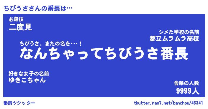 | ヒーロー風カッコイイあだ名 | 『スーパーチビウサ』『天弓騎士チビ』 |