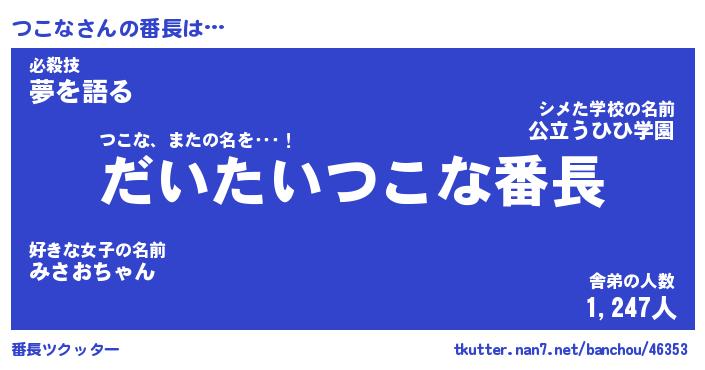 | ヒーロー風カッコイイあだ名 | 『スーパーツコナ』『ウルトラつこなマン』 |