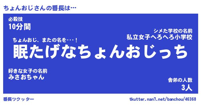 | 2回繰り返すあだ名 | 『ちょちょ』『ちちょょ』『ぬらぬら』 |