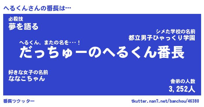 | 伝説のあだ名 | 『伝説のスナイパーへるくん』 |