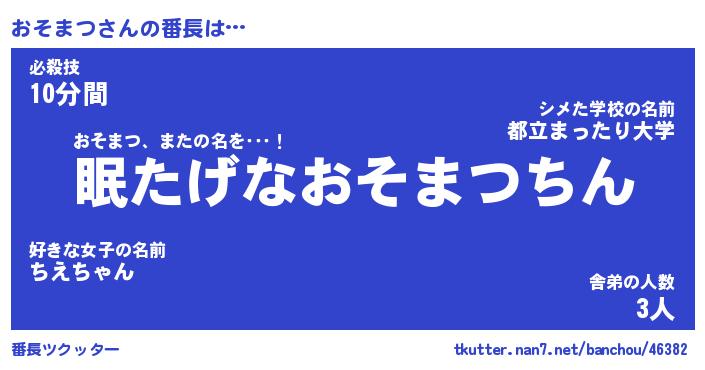 | 意味不明あだ名 | 『ペロリンおそまつ』『永久保存おそまつ』 |