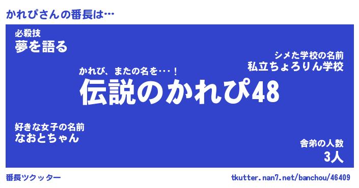 | 伝説のあだ名 | 『伝説のスナイパーかれぴ』 |