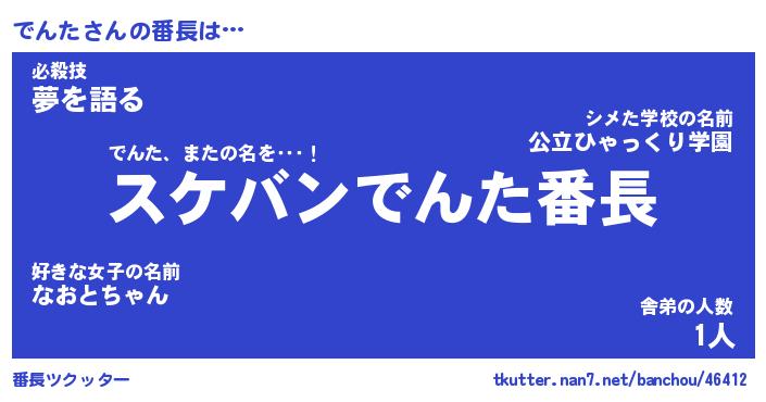 | 意味不明あだ名 | 『ペロリンでんた』『でんたフォーエバー』 |
