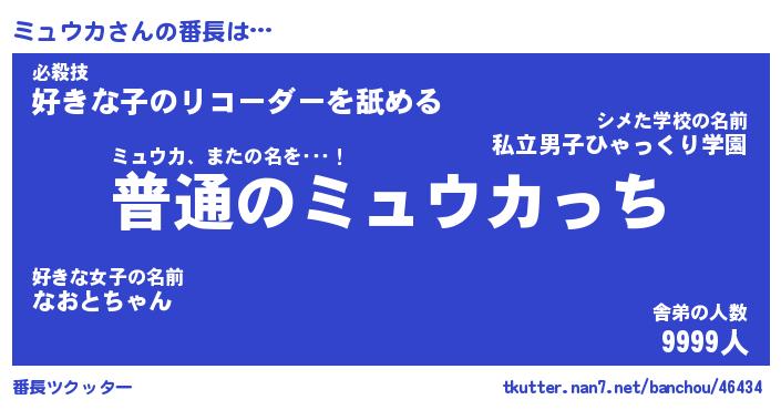 | 意味不明あだ名 | 『ペロリンミュウカ』『永久保存ミュウカ』 |