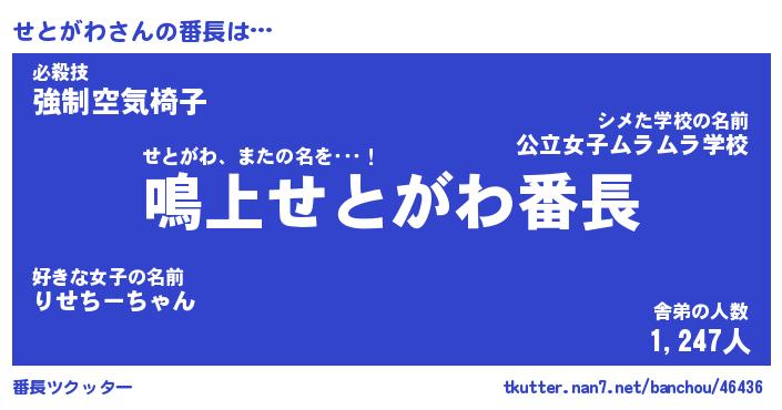 | 肩書あだ名 | 『せとがわ社長』『せとがわ国家主席』 |