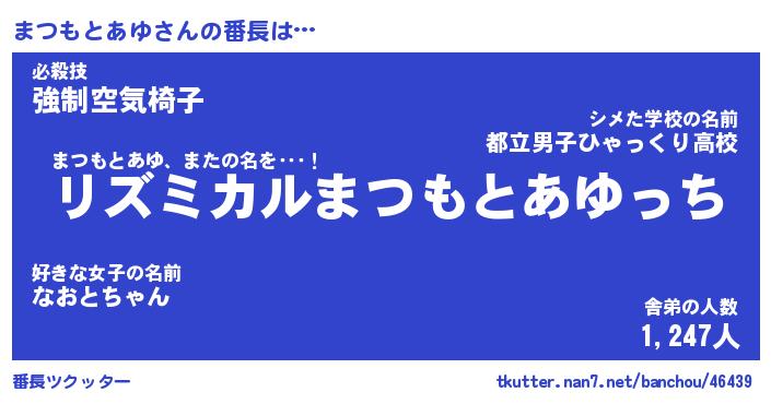 | 肩書あだ名 | 『まつもとあゆ御曹司』 |