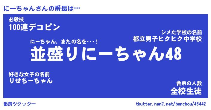 | ヘコむあだ名 | 『にーにー』『豆乳』『にーぷりん』 |