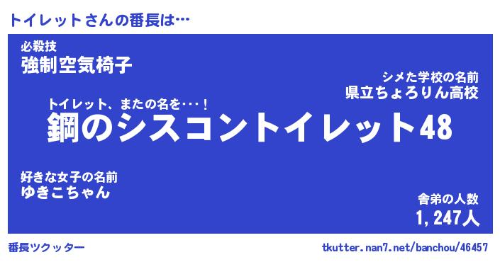 | ポケモン風あだ名 | 『トイチュウ』『トイレダネ』 |