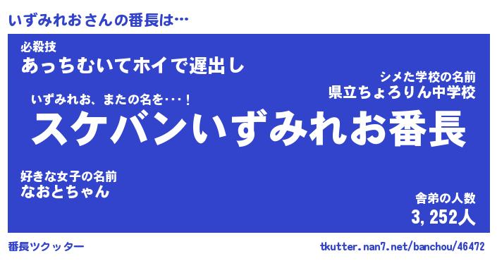 | ファンタジー風あだ名 | 『イズフェル』『エターナルイズミレオー』 |