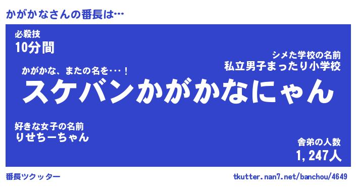 | 意味不明あだ名 | 『ペロリンかがかな』『永久保存かがかな』 |