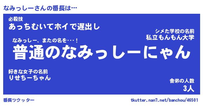 | 肩書あだ名 | 『なみっしー御曹司』『なみっしー大統領』 |
