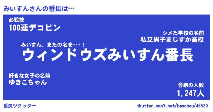 | ヘコむあだ名 | 『みいもー』『つくし』『みいお』 |