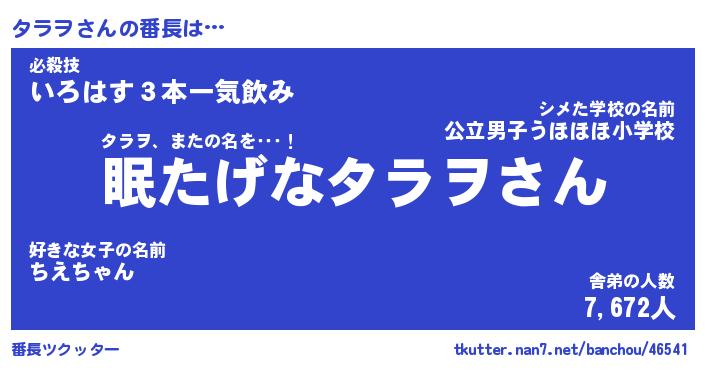 | 肩書あだ名 | 『タラヲ店長』『タラヲ国家主席』 |