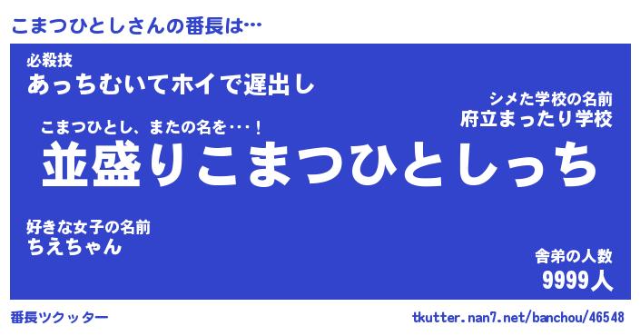 | ヒーロー風カッコイイあだ名 | 『スーパーコマツヒトシ』『暗黒騎士コマ』 |