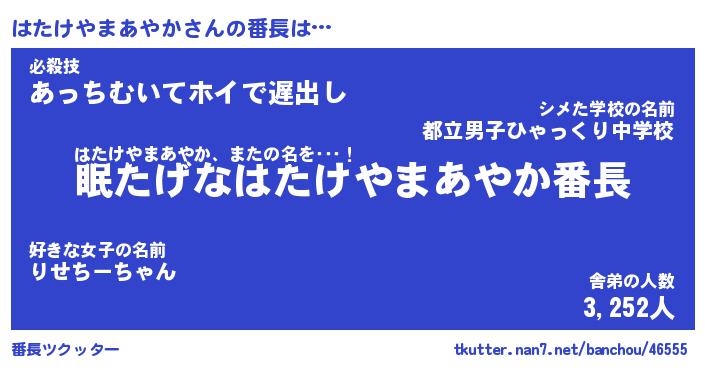 | ヒーロー風カッコイイあだ名 | 『スーパーハタケヤマアヤカ』 |