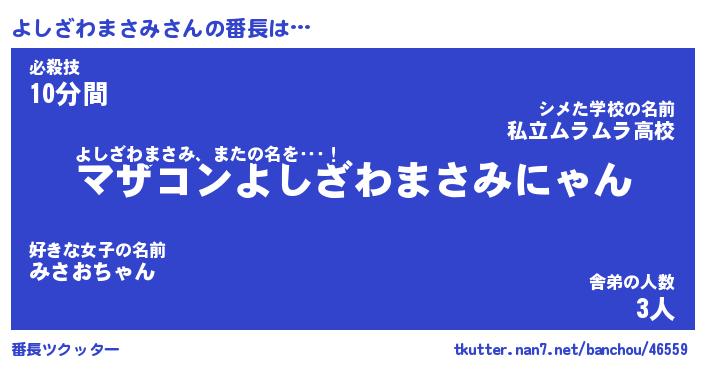 | 伝説のあだ名 | 『封印されしスナイパーよしざわまさみ』 |