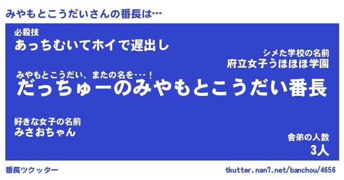 | 伝説のあだ名 | 『伝説のスナイパーみやもとこうだい』 |