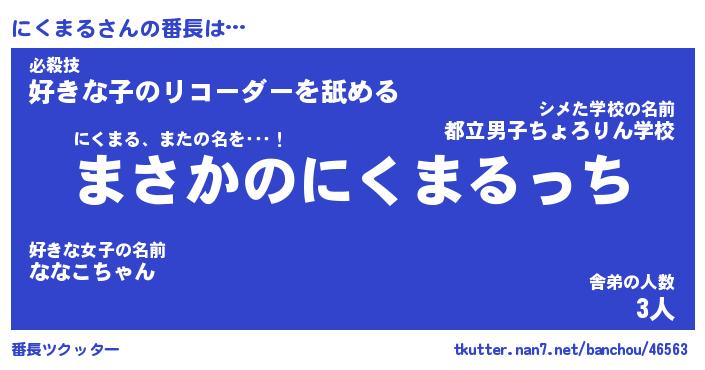 | ファンタジー風あだ名 | 『ニクフェル』『エターナルニクマルー』 |
