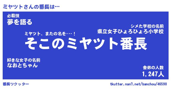 | 意味不明あだ名 | 『ペロリンミヤツト』『永久保存ミヤツト』 |
