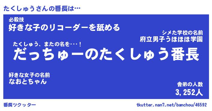 | 男性向けラノベタイトル風あだ名 | 『たくしゅうの憂鬱』 |