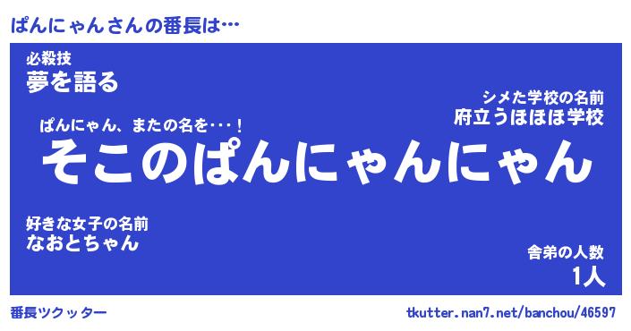 | 男性向けラノベタイトル風あだ名 | 『ぱんにゃんの憂鬱』 |
