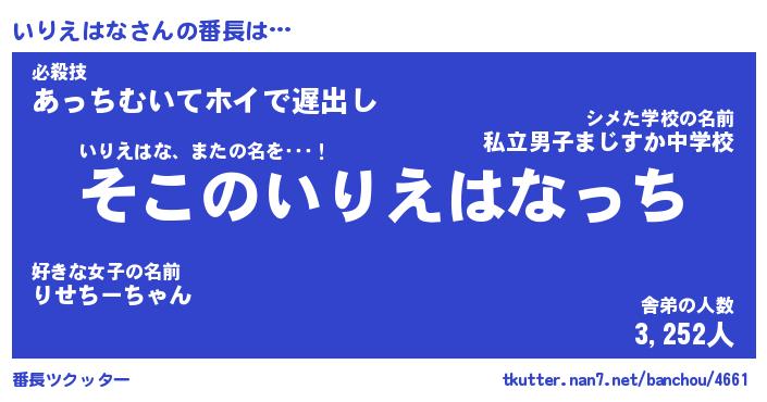 | 肩書あだ名 | 『いりえはな御曹司』『いりえはな大統領』 |