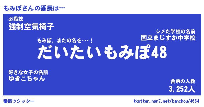 | ヒーロー風カッコイイあだ名 | 『スーパーモミポ』『ウルトラもみぽマン』 |