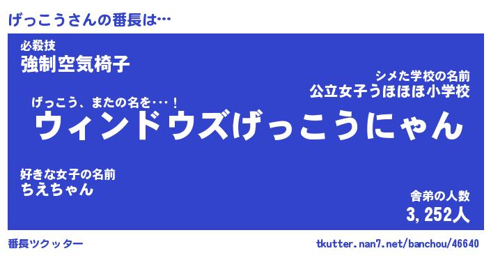 | 意味不明あだ名 | 『ペロリンげっこう』『永久保存げっこう』 |