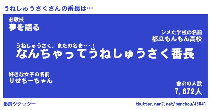 | 男性向けラノベタイトル風あだ名 | 『うねしゅうさくの憂鬱』 |