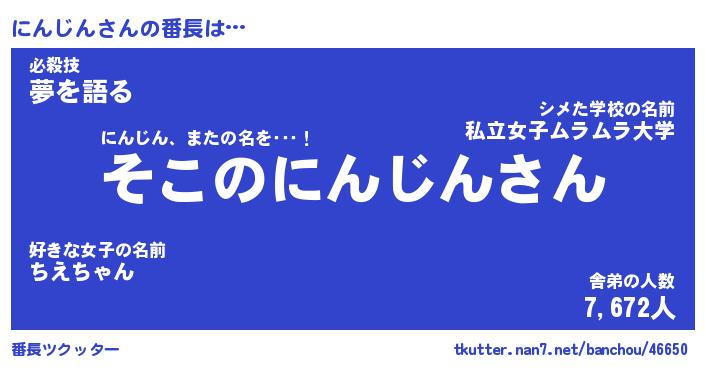 | 肩書あだ名 | 『にんじん店長』『にんじん国家主席』 |