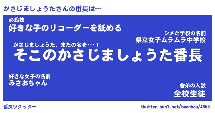 | ヒーロー風カッコイイあだ名 | 『スーパーカサジマショウタ』 |