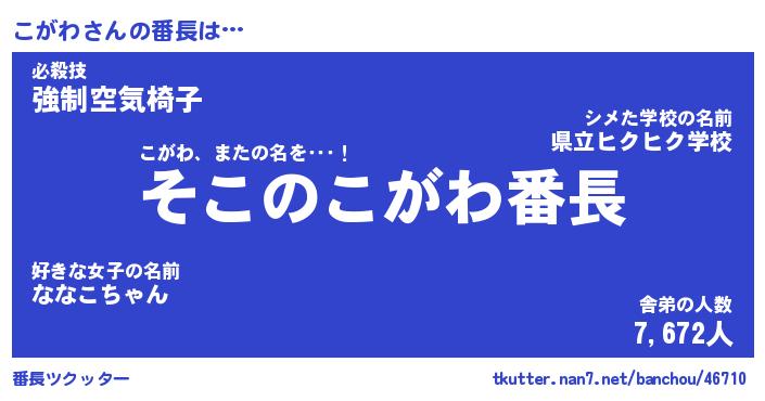 | 肩書あだ名 | 『こがわCEO』『こがわ総理大臣』 |
