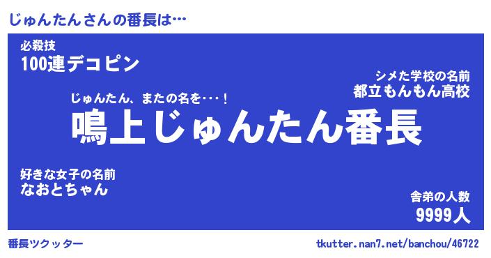 | ヒーロー風カッコイイあだ名 | 『スーパージュンタン』『天弓騎士ジュ』 |