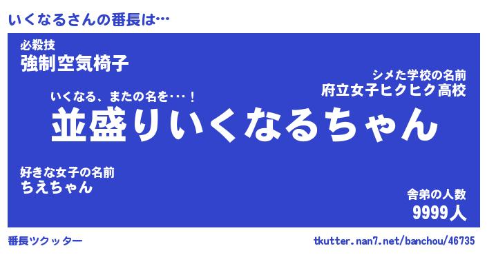 | 意味不明あだ名 | 『ペロリンいくなる』『永久保存いくなる』 |