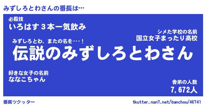 | 胡散臭い通販商品みたいなあだ名 | 『必ず成功する水晶球…その名も「みずしろとわ」』 |