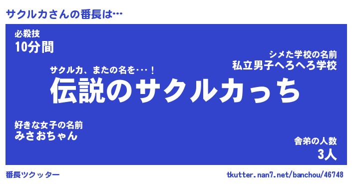| 意味不明あだ名 | 『ペロリンサクルカ』『永久保存サクルカ』 |