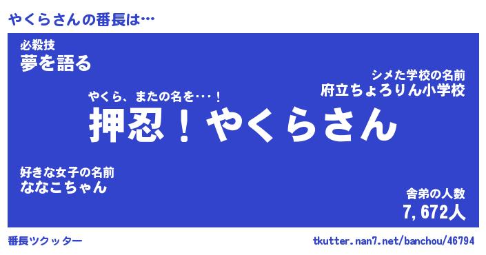 | 肩書あだ名 | 『やくら店長』『やくら総理大臣』 |
