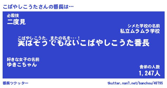 | 伝説のあだ名 | 『封印されしスナイパーこばやしこうた』 |