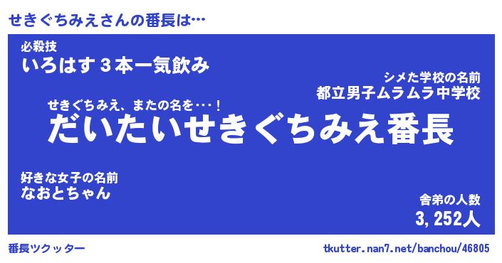 | 肩書あだ名 | 『せきぐちみえ店長』『せきぐちみえ団長』 |