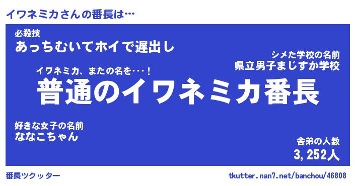 | 肩書あだ名 | 『イワネミカCEO』『イワネミカ国家主席』 |